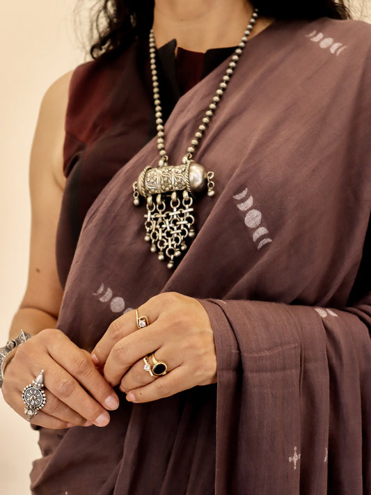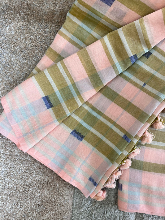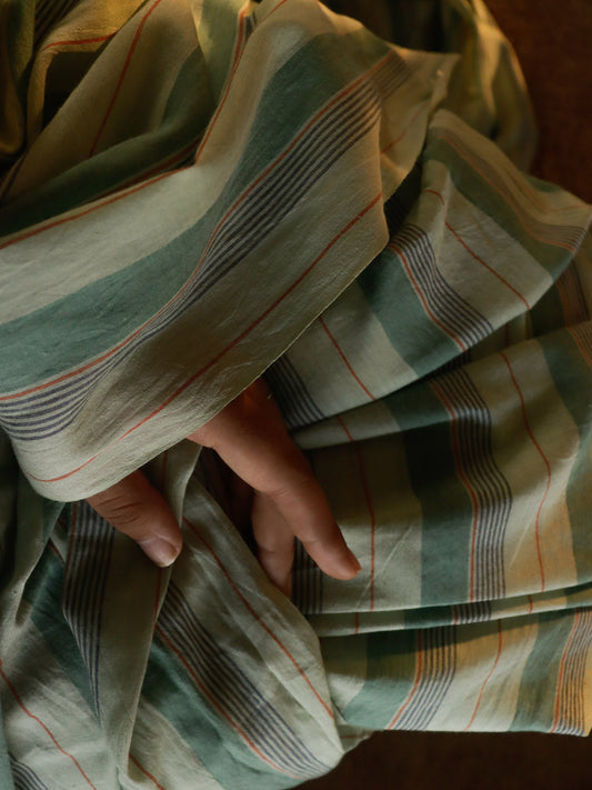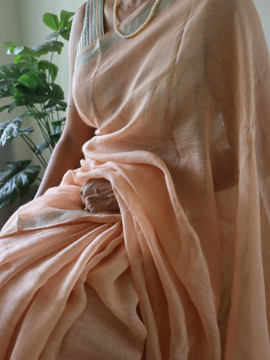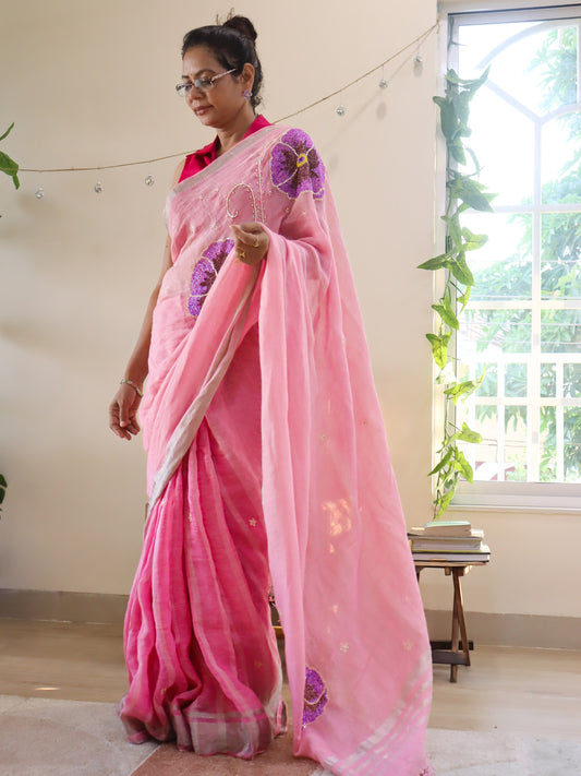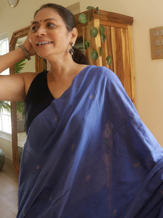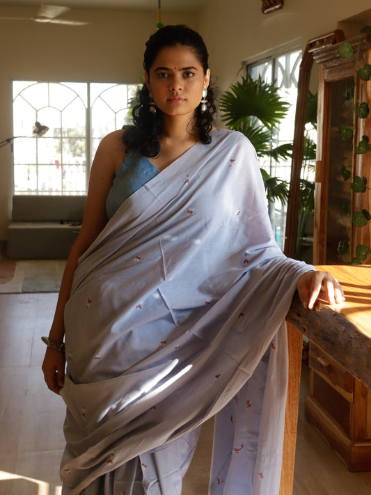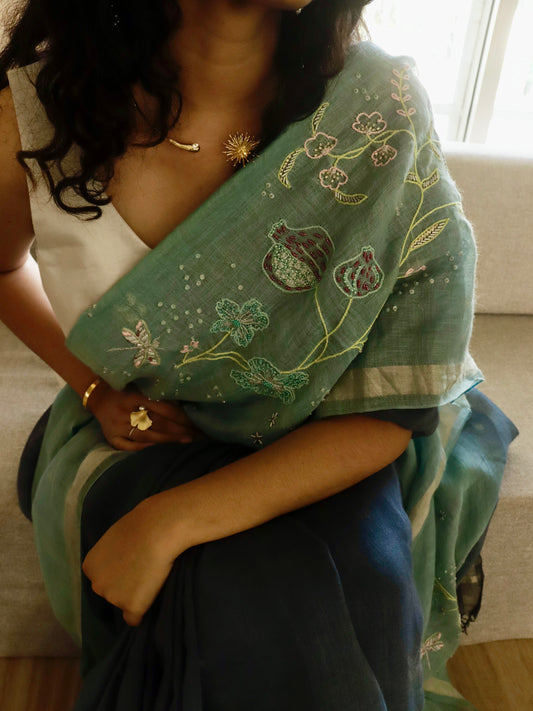 Sanjh - Dual Tone Blue Linen Dragonflies & Floral Embroidery Saree