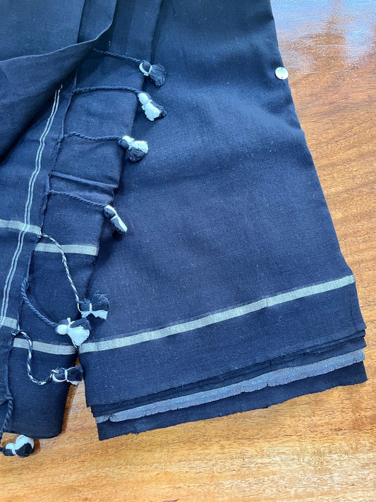 Nivedha - Ice Blue Linen Floral Embroidery Saree With Blouse Piece