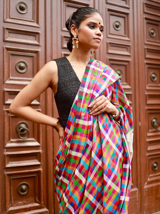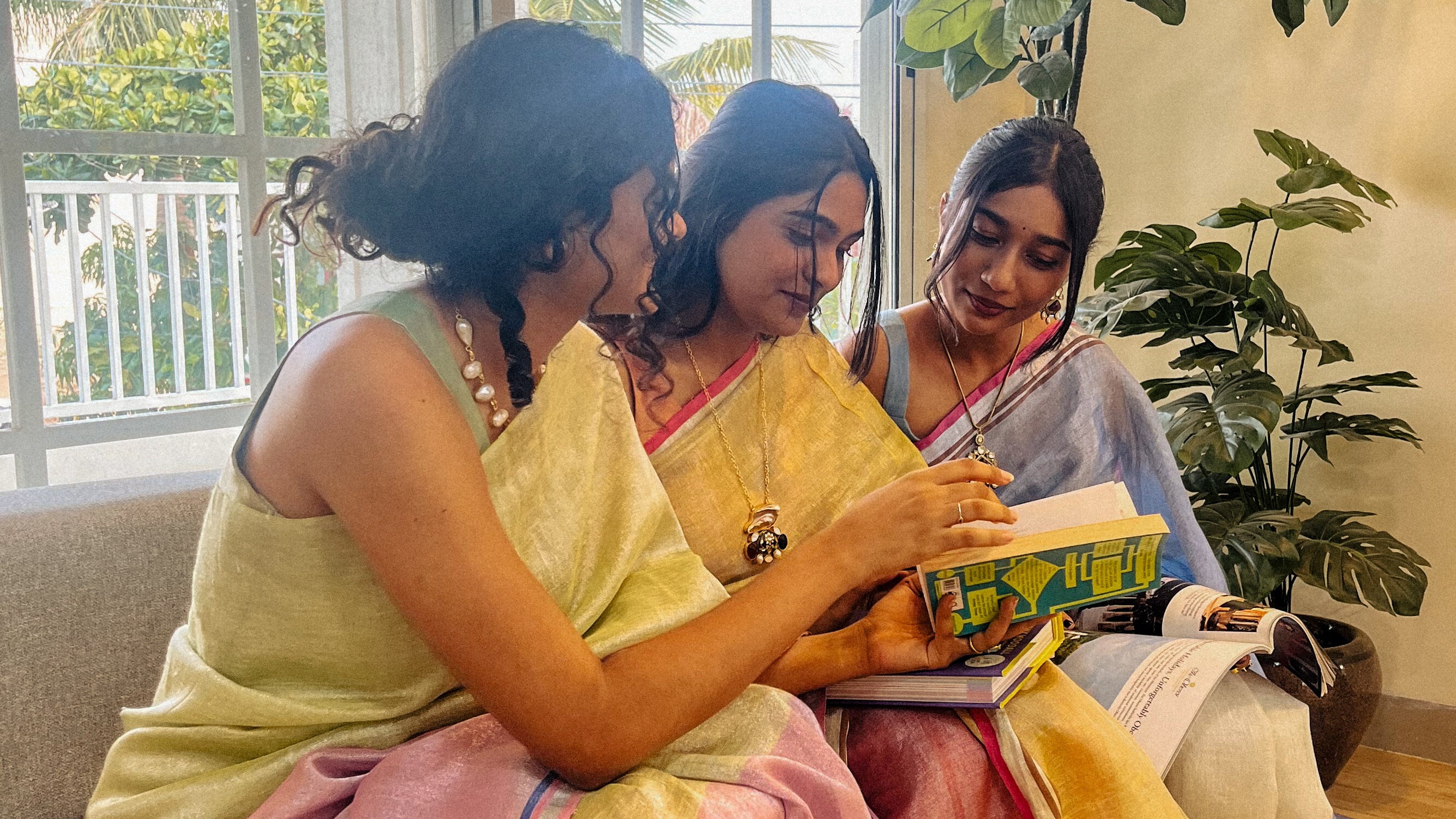 Sanjh - Dual Tone Blue Linen Dragonflies & Floral Embroidery Saree