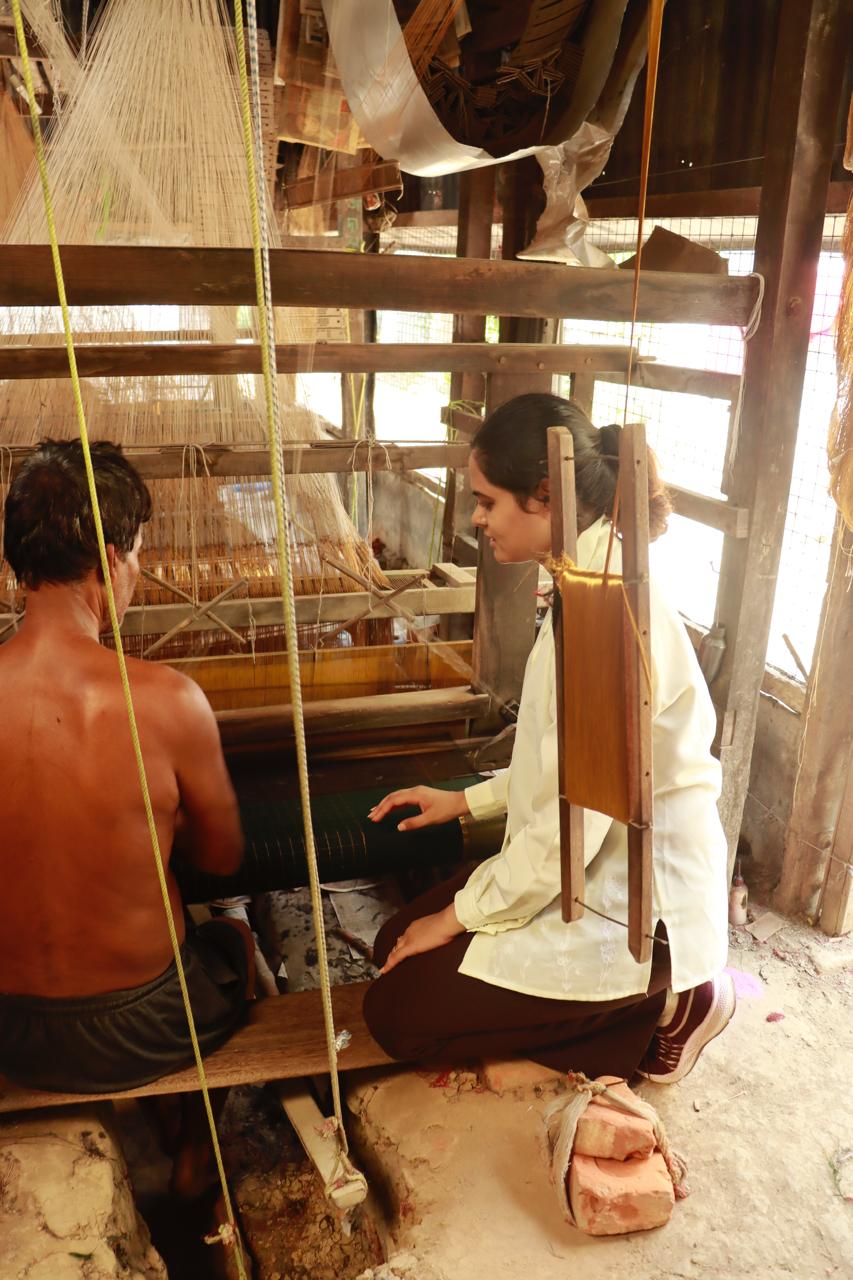 Keya Saree - Yellow Linen Large Lily Floral Embroidery Saree