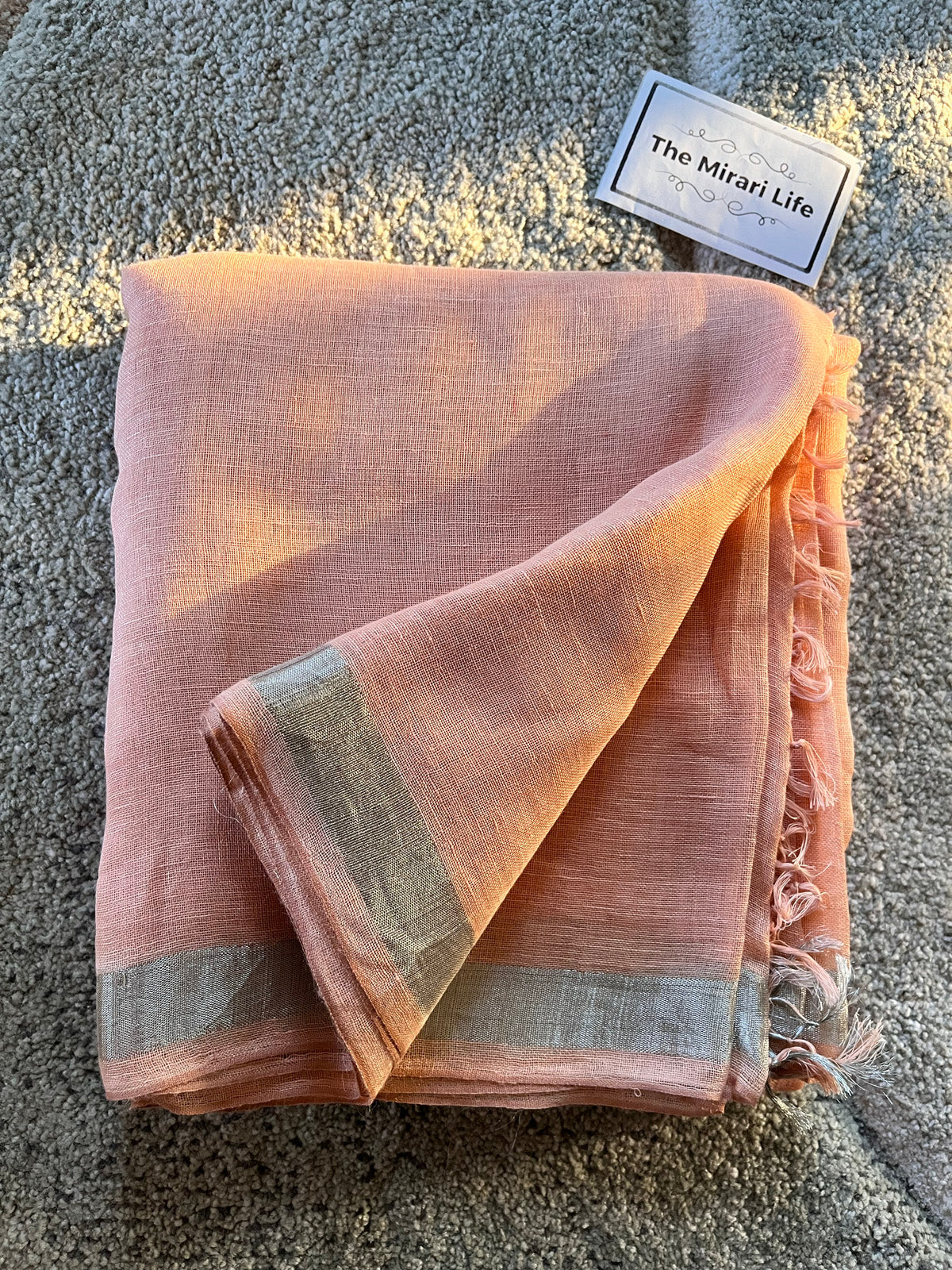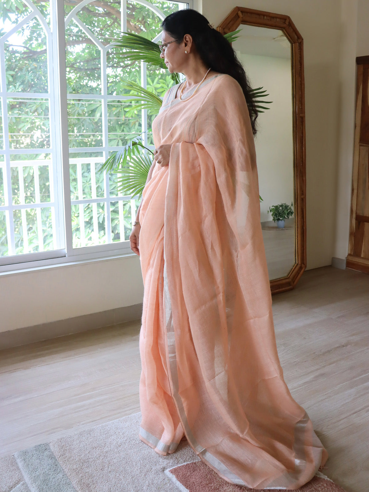 Woven in pure natural linen, these sarees are soft, breezy, and full of charm.