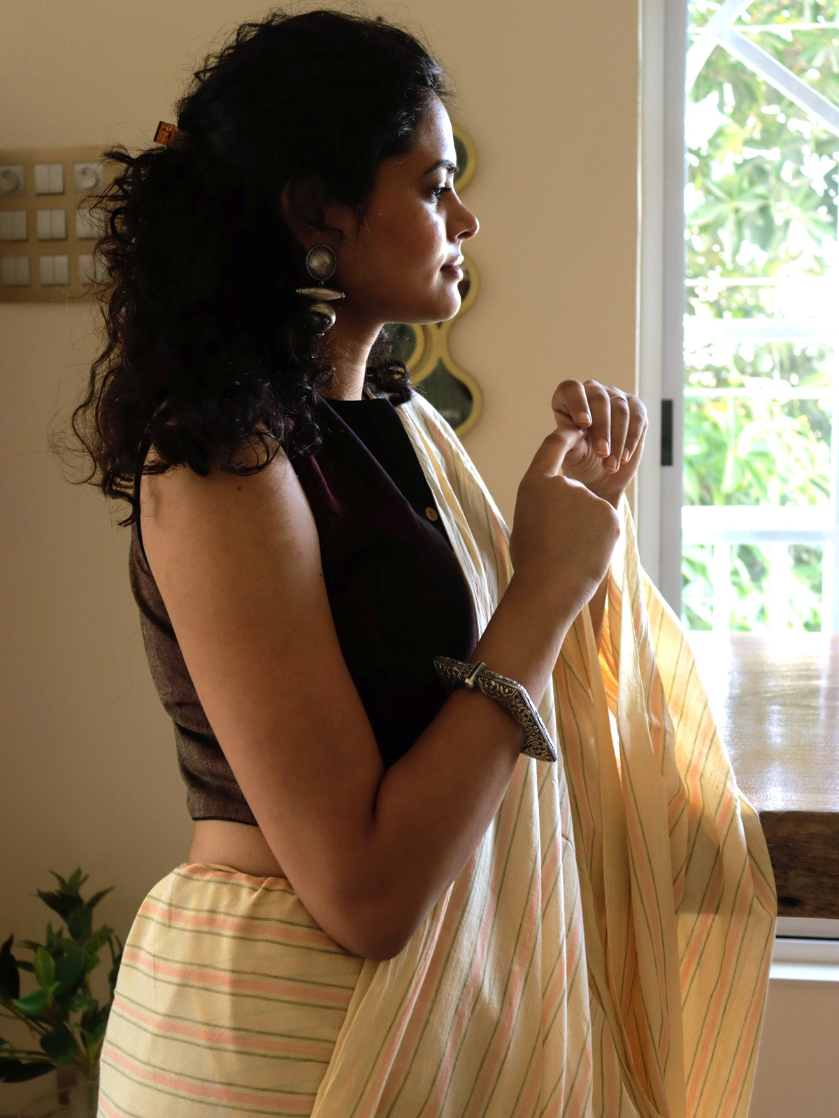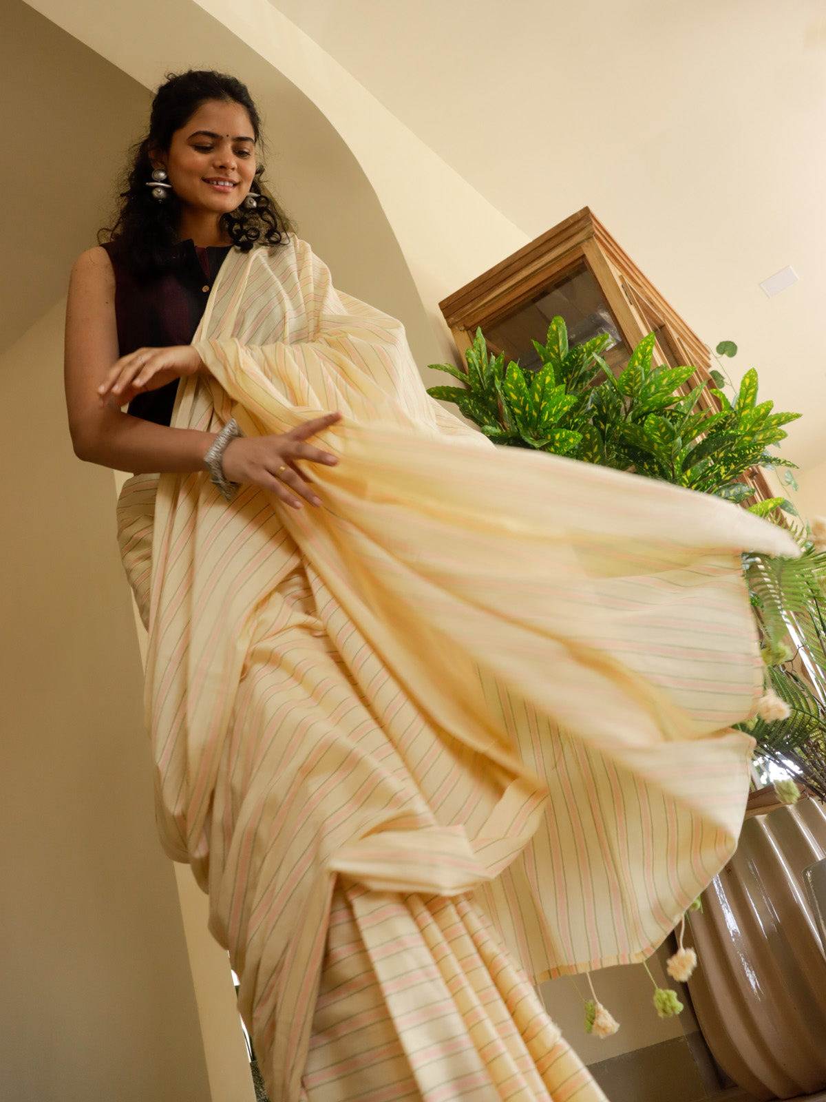 Handwoven Saree with Vintage Stripes for Structured Drape