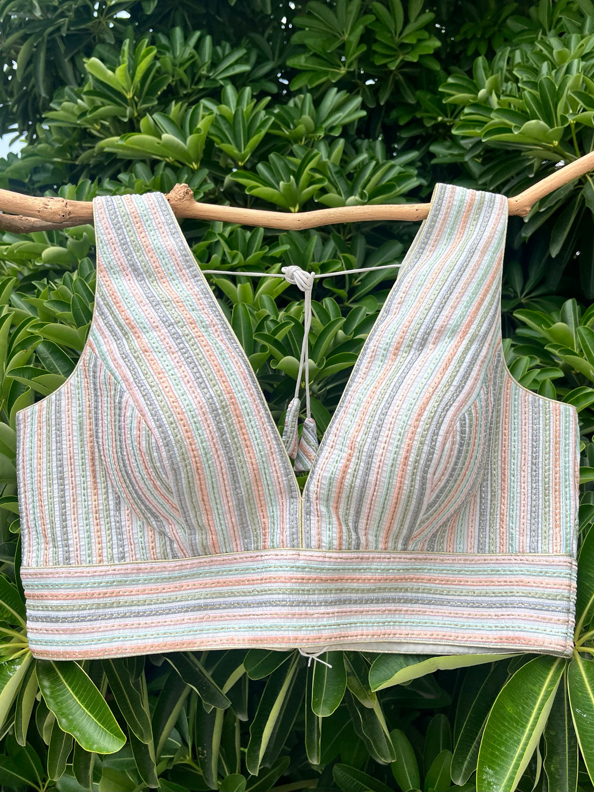 The green mul cotton saree is very soft and light on the body. It drapes so nicely and feels super comfortable. I love the colour—it’s calm and fresh. I like my sarees a bit crisp, so I added some starch, and it looked even better!