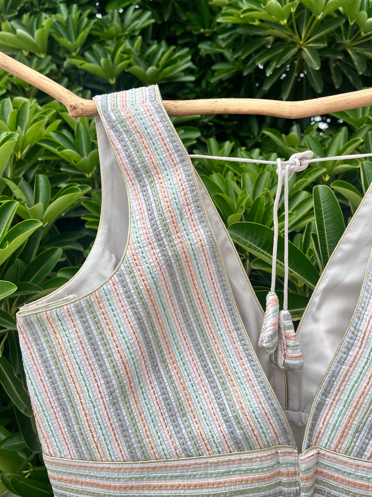 This tissue saree is so pretty! It has just the right amount of shine—not too much, just a soft shimmer when the light hits. The fabric feels nice on the skin and drapes really well.
