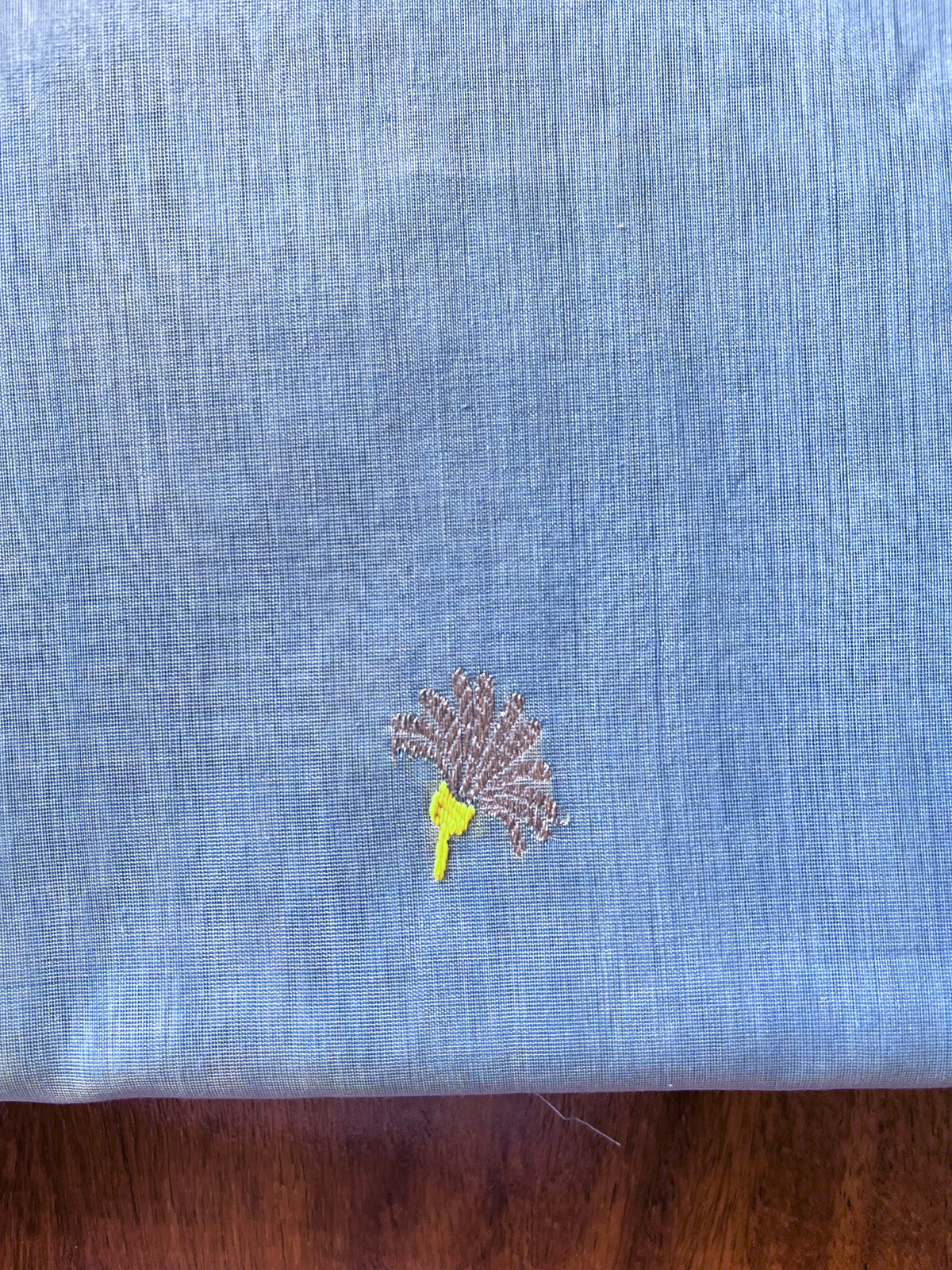 The green mul cotton saree is very soft and light on the body. It drapes so nicely and feels super comfortable. I love the colour—it’s calm and fresh. I like my sarees a bit crisp, so I added some starch, and it looked even better!
