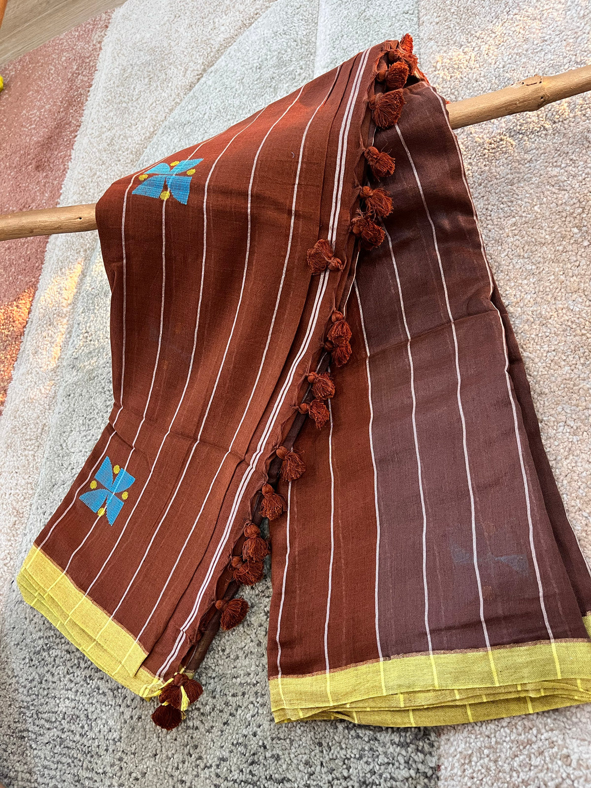 The green mul cotton saree is very soft and light on the body. It drapes so nicely and feels super comfortable. I love the colour—it’s calm and fresh. I like my sarees a bit crisp, so I added some starch, and it looked even better!