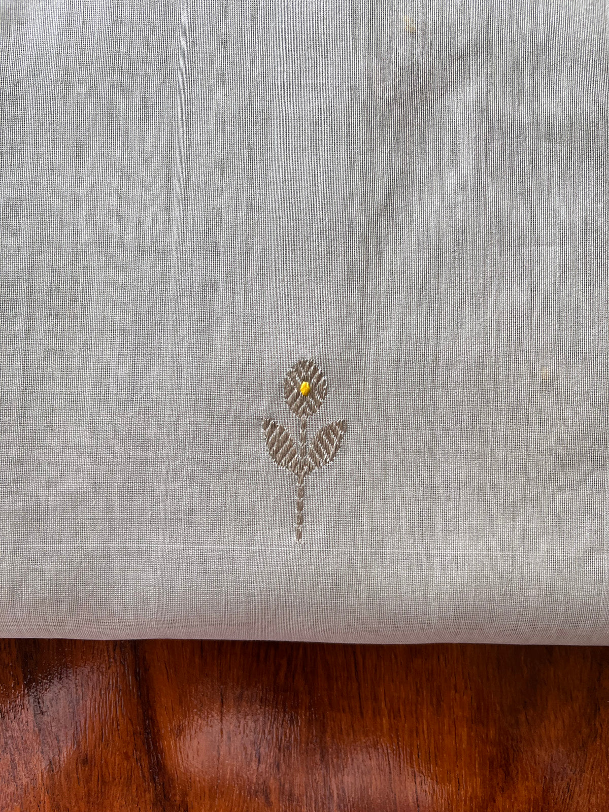The green mul cotton saree is very soft and light on the body. It drapes so nicely and feels super comfortable. I love the colour—it’s calm and fresh. I like my sarees a bit crisp, so I added some starch, and it looked even better!