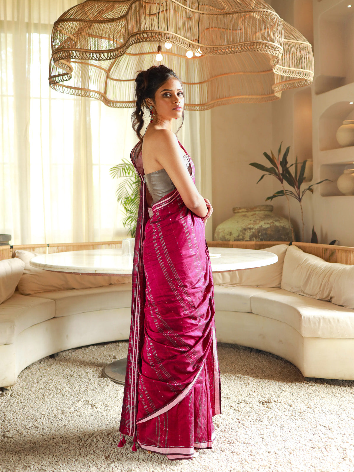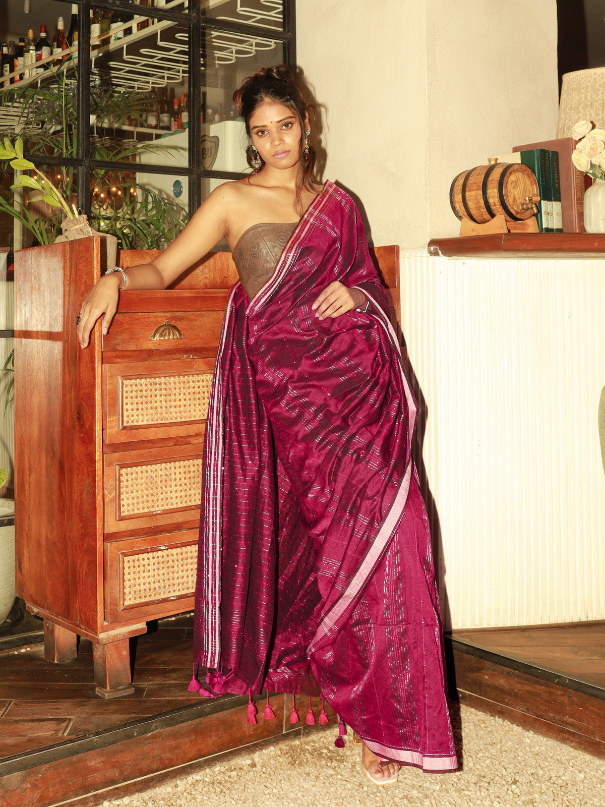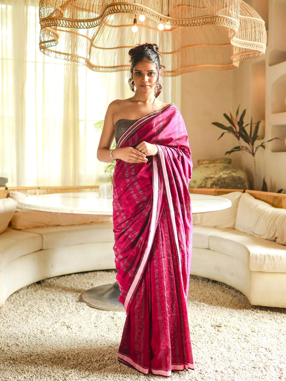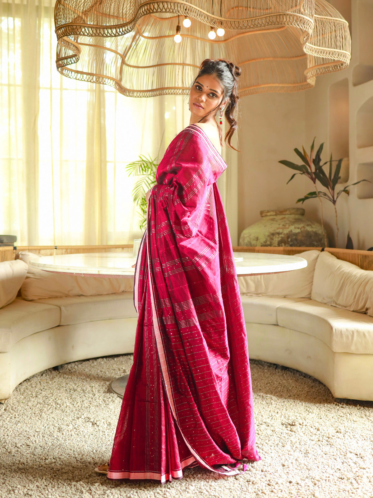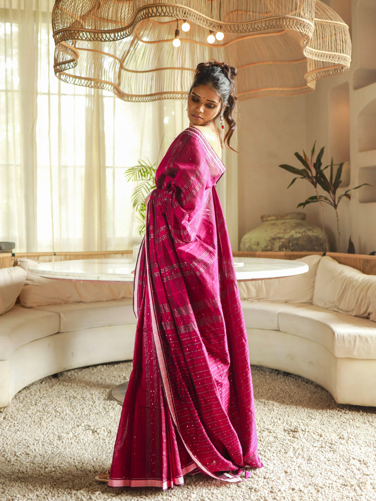 Magenta Pink Soft Cotton Saree With Natural Sheen and Woven Sequins