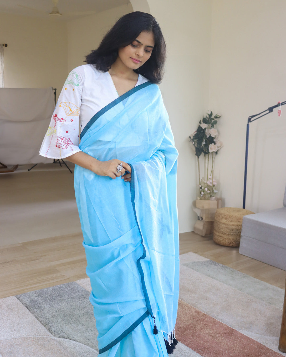 For The Mirari Life sarees, mul cotton is thoughtfully handwoven to drape like a second skin – fluid, delicate, and effortlessly elegant. The fabric is whisper-soft, yet surprisingly strong, offering both grace and ease in every fold. Whether worn at home or styled for a stroll under the stars, a mul saree brings with it the comfort of cotton and the romance of a summer breeze.